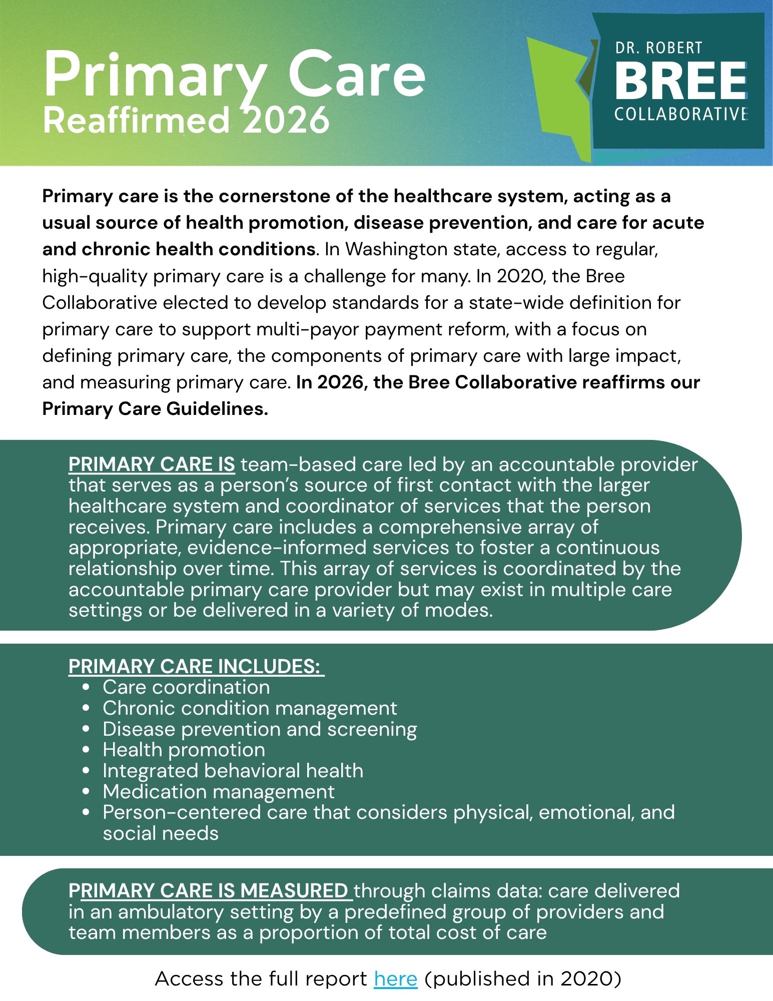 A shared understanding of high‑quality primary care supports alignment across partners in the Washington healthcare ecosystem and helps ensure access to systems, providers, and healthcare teams equipped to deliver comprehensive, effective care. Read the reaffirmed guidelines, and the archived full 2020 report. (Darcy Jaffe)